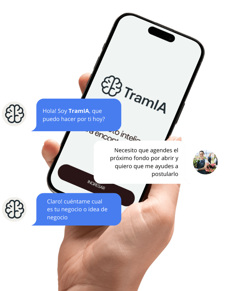 TramIA es un asistente de inteligencia artificial diseñado para ayudar a emprendedores, organizaciones, artistas y personas naturales a entender y postular a fondos públicos, sin perderse en bases extensas o lenguaje técnico.